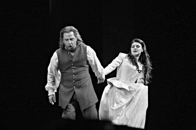 在调子阴暗的音乐中,一对世仇家族中的恋人相爱却无法相拥的故事就此展开。在这部情节与“罗密欧与朱丽叶”相似的歌剧中,女主角露琪亚在哥哥的欺瞒下,误以为爱人埃德加多背叛自己,并被迫答应嫁给他人。饰演露琪亚的女高音歌唱家维涅拉·吉玛蒂耶娃,用柔美圆润的声音,生动细致地刻画出露琪亚在兄长逼迫时的无奈,与发现爱人“背叛”时的心碎。