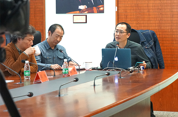 邱志杰现场向媒体讲解本届中国馆策展方案及框架