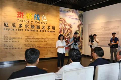 由厄瓜多尔驻华大使馆、江苏省文化厅、中国对外文化集团公司主办,江苏省美术馆、中国对外艺术展览有限公司承办的《斑驳线色—厄瓜多尔绘画艺术展》于2017年5月18日在江苏省美术馆陈列馆隆重开幕。