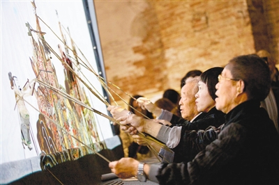 皮影和现代的电影、电视有相近的影视效果,却有着千年的历史。中国工艺美术大师、“非遗”项目陕西皮影传承人汪天稳与汤南南、邬建安共同创作的皮影“不息——移山填海”在展厅的3个屏幕演出。他们希望“使用传统皮影的工艺去创作全新的当代艺术作品。”用这种沟通古今的形式来表现愚公移山、精卫填海、夸父追日、大禹治水等中华民族生生不息神话传说,揭示艺术内在的民族精神力量。