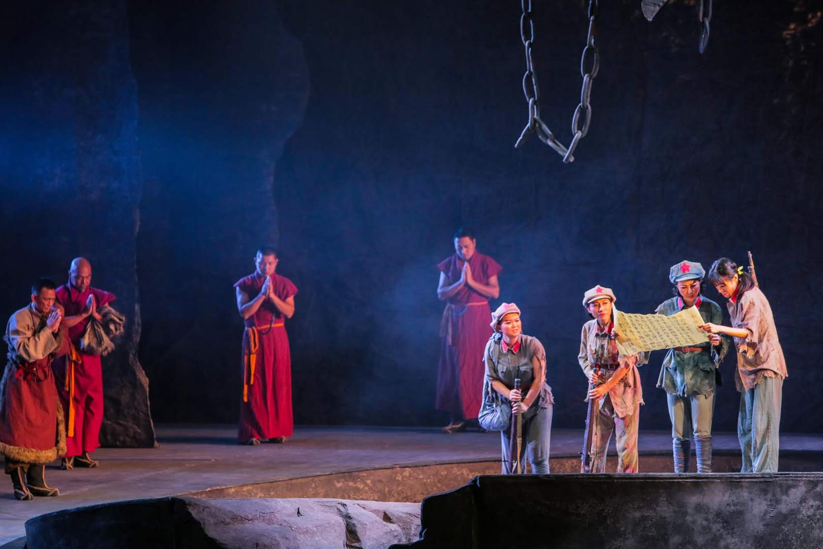 130分钟的演出,没有说教、没有口号,而是通过小人物们对爱情和生命的思考、对人生和信仰的选择,推动整体剧情的发展,以人性的角度,去探索人心深处关于生命和信仰的选择、权衡以及坚持的程度,从而让人性的光辉发挥得更加淋漓尽致、极具真实感。