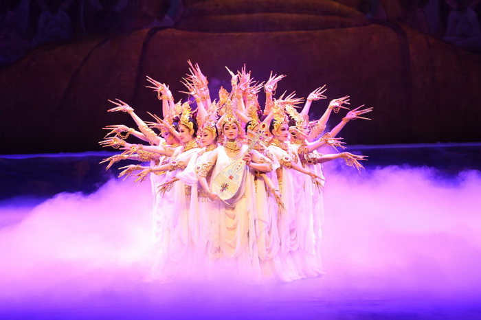 舞台上,舞者华美的服装,张力十足的舞蹈动作,以及恢弘的舞台背景,将瑰丽多彩的敦煌壁画搬上舞台,再现了敦煌文化的博大精深和古丝绸之路的繁荣昌盛。通过对创造辉煌灿烂敦煌文化的劳动人民形象的深度刻画,弘扬了丝绸之路“友好通商、互惠共融”的优良传统,歌颂了中外人民源远流长的伟大友谊。