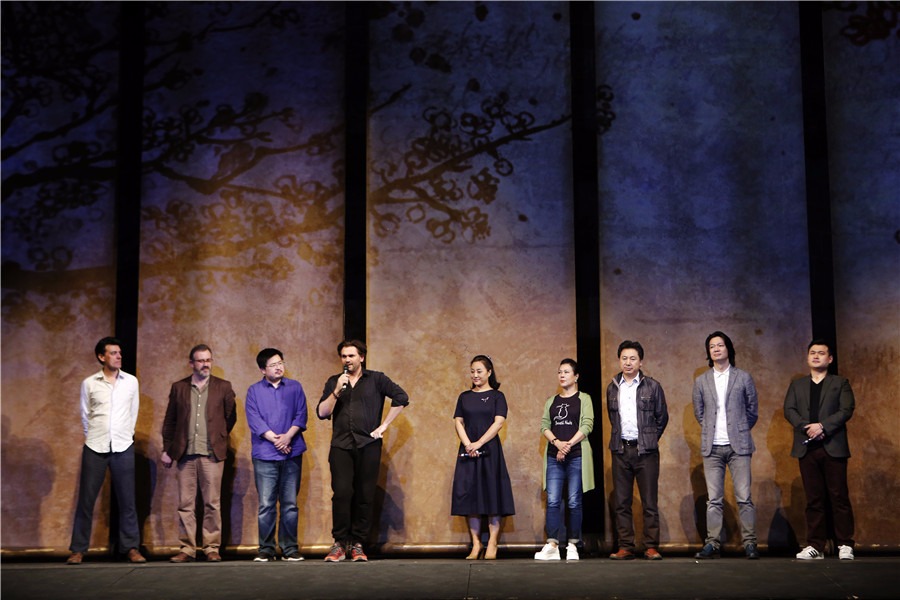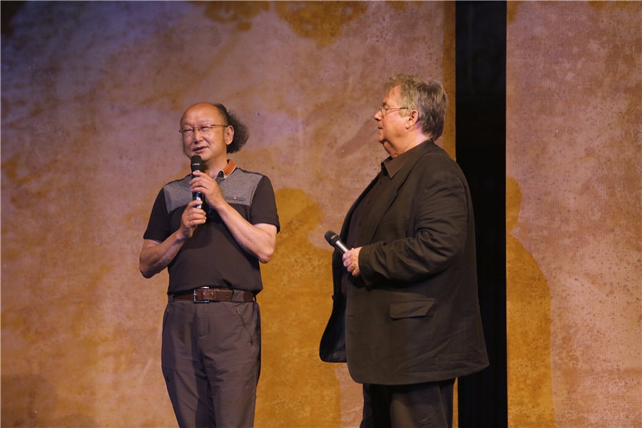 中演院线总经理、天桥艺术中心总经理、歌剧《马可波罗》制作人张利,与诗人及《马可·波罗》编剧韦锦、作曲恩约特·施耐德国际华人指挥大师汤沐海,主演彼得·洛达尔(丹麦)、周晓琳、梁宁、袁晨野、赵明、熊柯嘉、冯国栋等出席发布会。