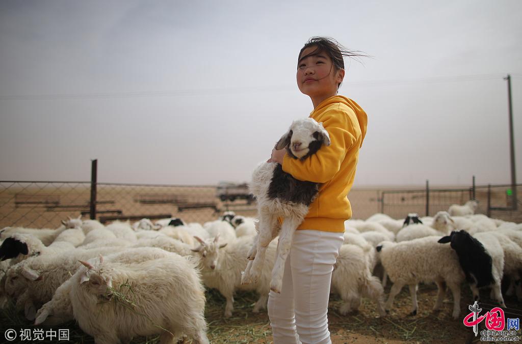 合唱团的乌日拉嘎一回到牧区的家便抱起可爱的小羊羔。