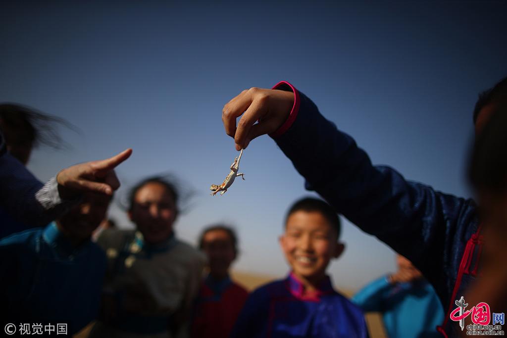 苏尼特少儿合唱团的成员们在草原上捉住了一只小蜥蜴。像许多贫困地区、边远地区少儿艺术教育面临的困境一样,缺少活动经费、缺少优秀的音乐教师制约着合唱团的发展。