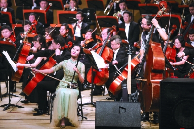 图为8月12日晚的开幕演出中,金佛爵士乐团上演原创作品《海河组曲》,并与天津交响乐团合作演奏了《五大道》《津武门》《若水》3首曲目。