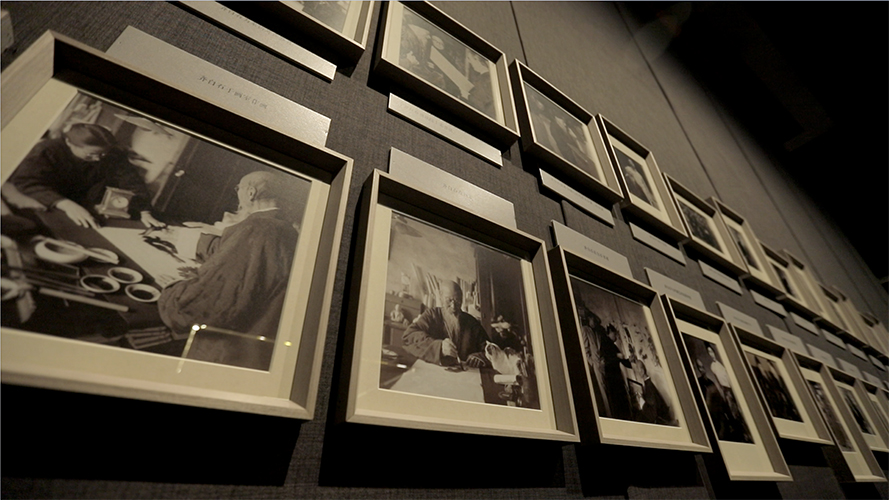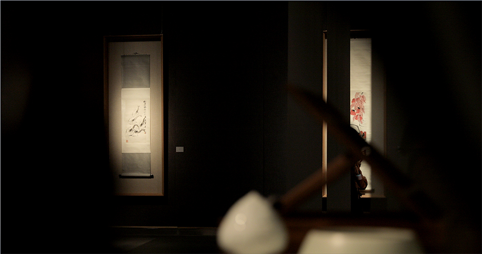 在展览的空间布局方面,展览设置了作品展示空间、影像观摩空间、画室模拟空间三个主体空间。以印有齐白石印章的纱幔做分割,营造了层次分明、错落有致的精致空间感,致力于形成一种经常让人眼前一亮、别有洞天的参观体验。