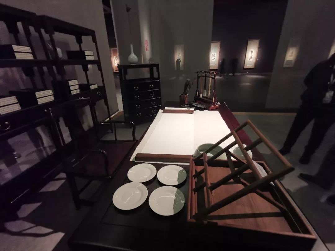 尤其值得一提的是,为了让观众产生近似于身临其境的现场感,展览专门在展厅的中央设计、搭建了画室模拟空间。天地儒风公司无偿赞助使用了价值不菲的古典家具。模拟一种与展览整体氛围相符合的创作场景,增强展览的趣味性,吸引观众更深入的探索大师的艺术世界。