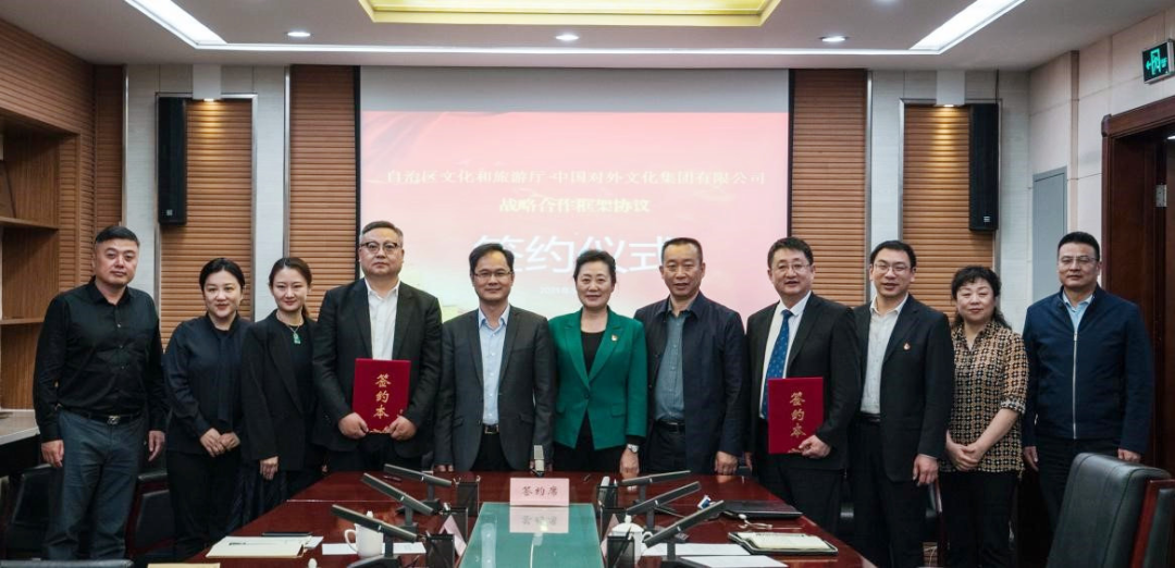 5月10日,中国对外文化集团有限公司与新疆维吾尔自治区文化和旅游厅战略合作框架协议签订仪式在乌鲁木齐举行。在新疆文化和旅游厅党组书记、文博院党组书记侯汉敏和中国对外文化集团有限公司党委书记、董事长李金生的共同见证下,新疆维吾尔自治区文化和旅游厅党组成员、副厅长张勇东,中演演出院线发展有限责任公司执行董事、总经理张利作为双方代表签约。根据协议,双方将秉承“优势互补、市场运作、合作共赢”原则,助推新疆文化旅游融合发展,提升新疆文旅品牌影响力。