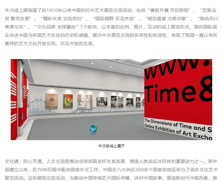 近日,“时空之维—中国与世界的艺术交往”线上展成功发布。展览由中国对外文化集团有限公司主办,中国对外艺术展览有限公司承办,以中、英、法、阿、意、西六种语言呈现。