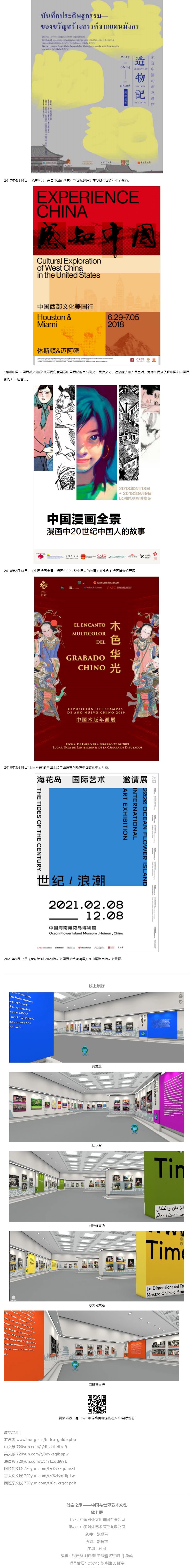 展览网址: 汇总版 www.bunge.cc/index_guide.php 中文版 720yun.com/t/dbvktbdlzd9 英文版 720yun.com/t/8dvkzqibppw 法语版 720yun.com/t/c1vkzqd9r7b 阿拉伯文版 720yun.com/t/c0vkzqdms8l 意大利文版 720yun.com/t/f6vkzqdlp1w 西班牙文版 720yun.com/t/0evkzqdepdh
