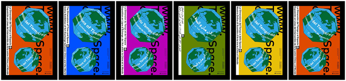 六种语言展览海报,依次为中文版、英文版、法文版、阿拉伯文版、意大利文版、西班牙文版