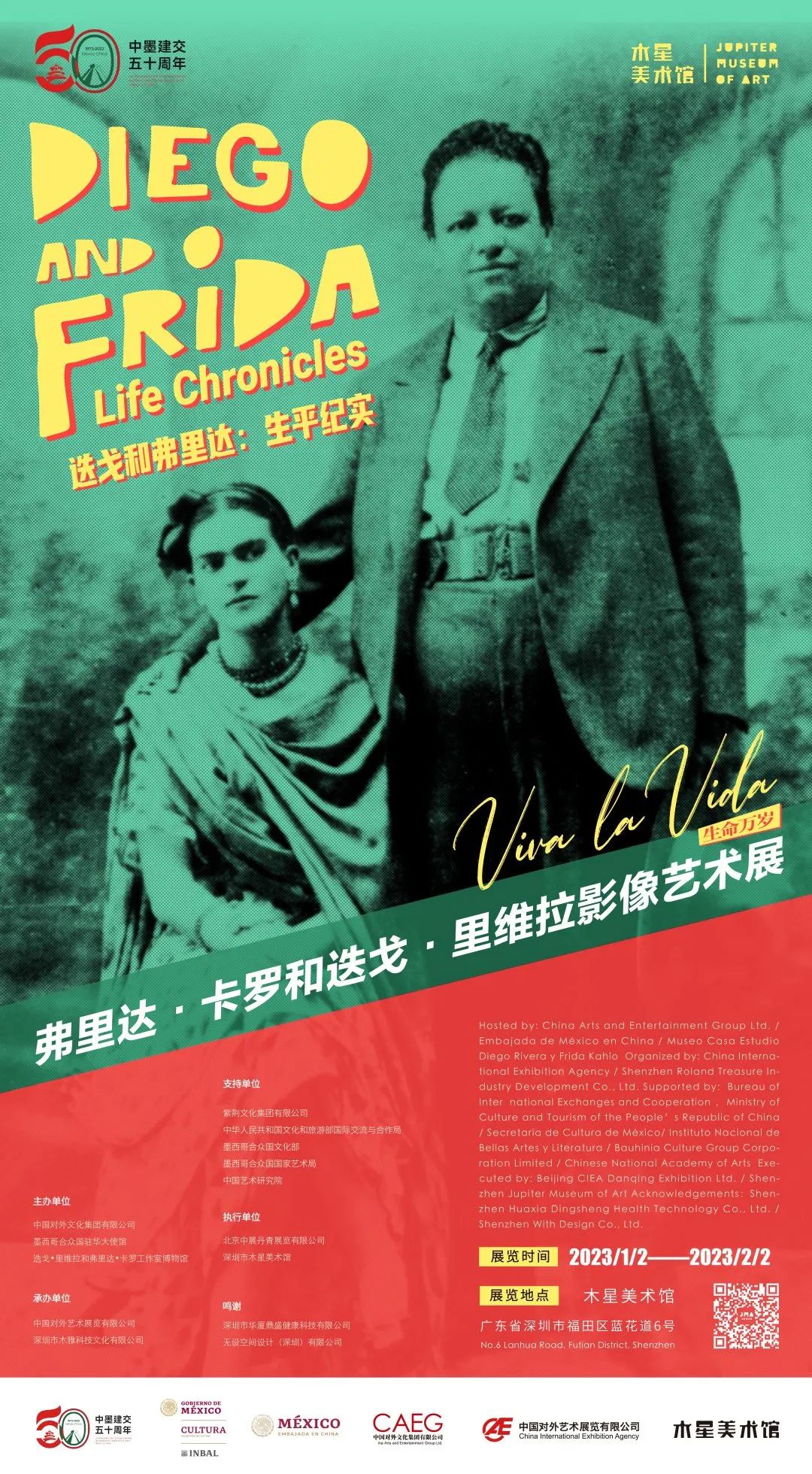 1月2日,由中国对外文化集团有限公司、墨西哥合众国驻华大使馆、迭戈•里维拉和弗里达•卡罗工作室博物馆主办的“生命万岁——弗里达·卡罗和迭戈·里维拉影像艺术展”(迭戈和弗里达:生平纪实)在深圳木星美术馆开展。