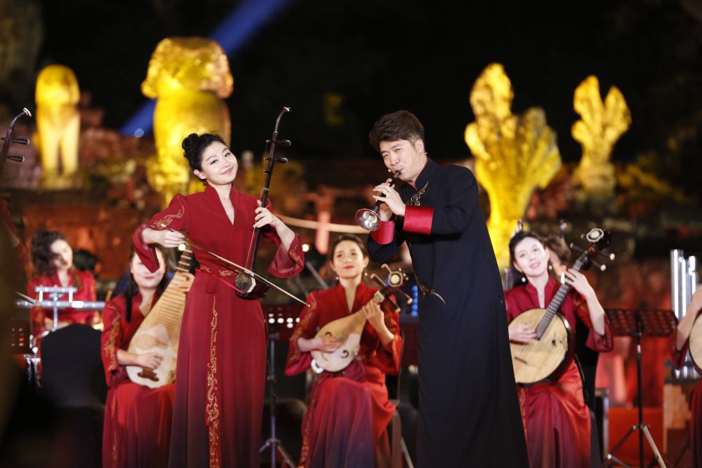 来自中央民族乐团、中国歌剧舞剧院、中国国家话剧院的艺术家与柬埔寨文化艺术部舞蹈团、乐团的艺术家,以及柬埔寨儿童合唱团联袂带来了精彩的演出。柬埔寨诺罗敦·珍娜小公主深情演唱象征中柬友谊的歌曲《怀念中国》;中柬乐团合奏民乐节目《祝贺》,用音乐献上对彼此最真挚的祝福;中国“乐器之王”琵琶与柬埔寨古老乐器长臂琴共同演奏《玫瑰印象》,两国最具代表的音色在共鸣中奏出和美之音;最后,中柬两国艺术家合作两国代表性歌曲《茉莉花》《高棉的灵魂》,将演出推向高潮。