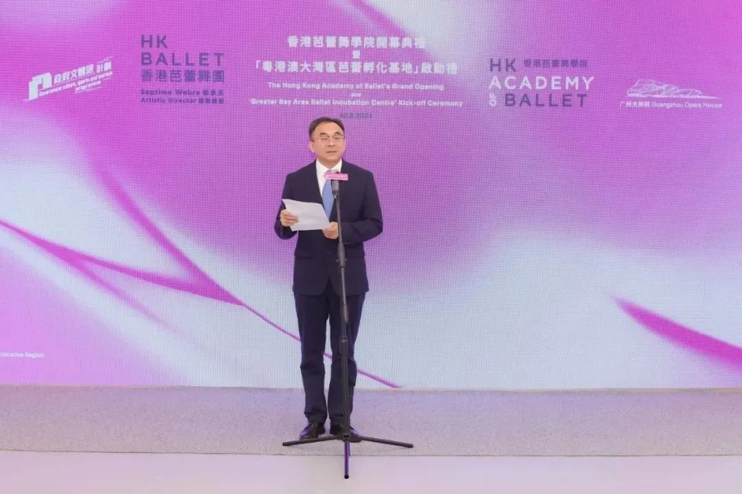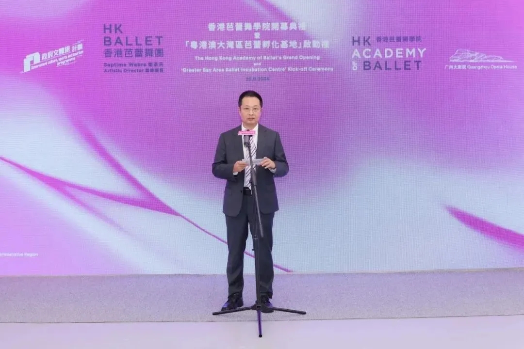 中国对外文化集团总经理李保宗表示:“建设粤港澳大湾区是习近平总书记亲自谋划、亲自部署、亲自推动的重大国家战略。中国对外文化集团立足香港,深耕大湾区,积极参与粤港澳大湾区文化建设,丰富大湾区文化产品和服务。今天,我集团旗下广州大剧院联合香港芭蕾舞团共同发起成立的粤港澳大湾区芭蕾孵化基地正式启幕,旨在集合大湾区内外资源,形成区域合力,以大湾区为基点,建设具有国际影响力的芭蕾艺术人才创作发展平台,打造具有中国特色、世界表达的芭蕾精品,为世界芭蕾发展贡献中国力量。基地的成立,既是我集团推动湾区芭蕾艺术高质量发展的重要举措,也是我集团与港澳文化机构、艺术院团之间深入合作的又一成果。”