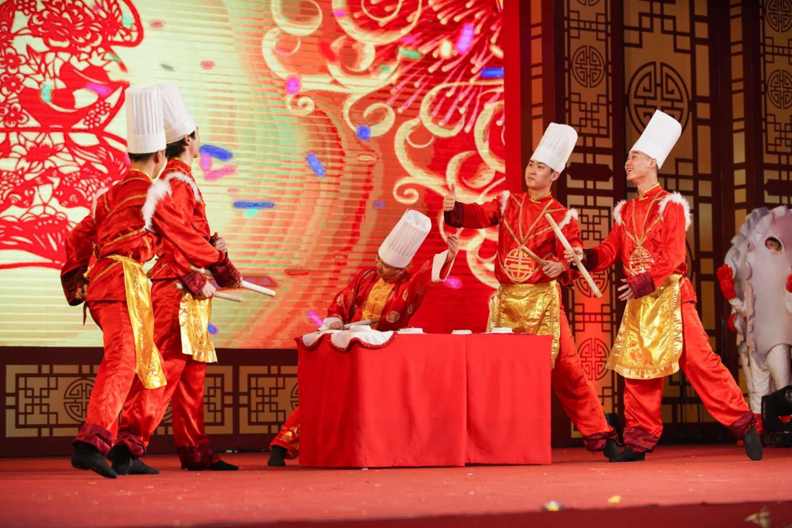 1月24日,泰国曼谷举办“欢乐春节”系列活动,图为以包饺子为主题的舞蹈《欢欢喜喜过大年》。