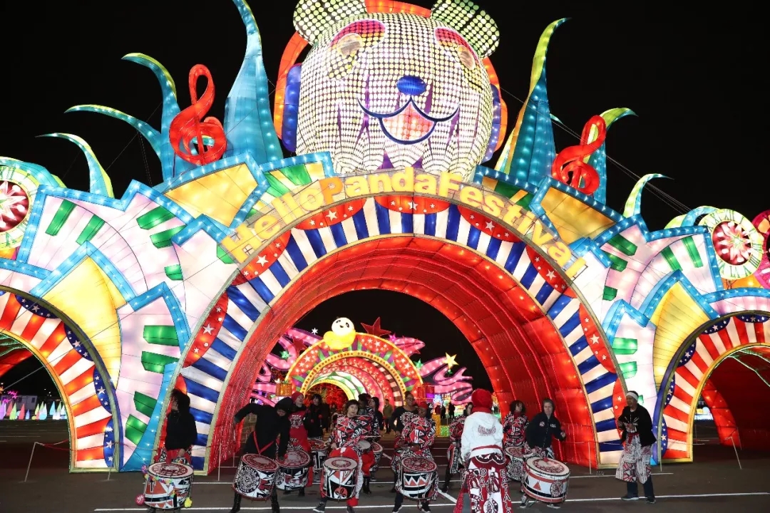 美国纽约“天下华灯”嘉年华活动现场的熊猫迎宾大门。