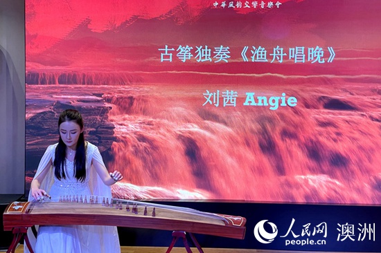 参演艺术家刘茜在新闻发布会现场进行古筝独奏(摄影张广涵)