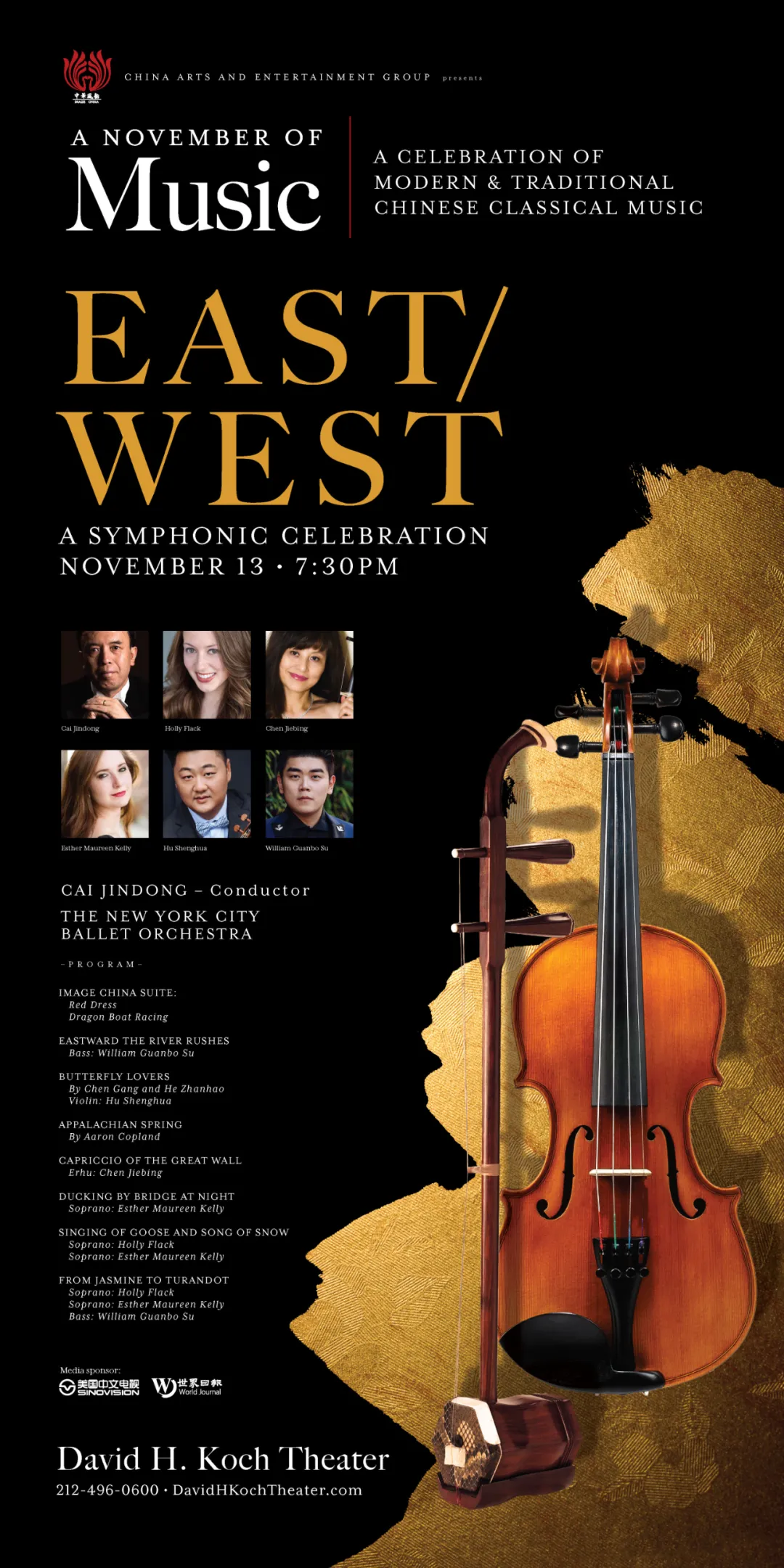 “中华风韵”作为中国对外文化集团有限公司打造的高端对外文化交流品牌,由所属中国对外演出有限公司负责具体实施,此次为该品牌在疫情之后的首次线下亮相。当晚的音乐会由著名华人指挥家蔡金冬执棒,特邀小提琴家胡盛华、二胡演奏家陈洁冰、男低音苏冠搏、女高音霍莉·弗莱克和埃丝特·莫琳·凯莉与纽约城市芭蕾舞团交响乐团合作演出,共同带来小提琴协奏曲《梁祝》、二胡协奏曲《长城随想》、歌曲《从茉莉花到图兰朵》等名曲佳作,让现场近2000名观众体验了东西方艺术融合的魅力。
