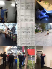 自1月28日起,物业中心党员职工对在岗人员、访客进行登记并测体温,在剧院内增设废弃口罩回收桶,对剧院各区域消毒;要求返穗人员在家隔离14天,并每天做好人员健康记录;协助街道做好人员信息登记和返工情况上报工作。